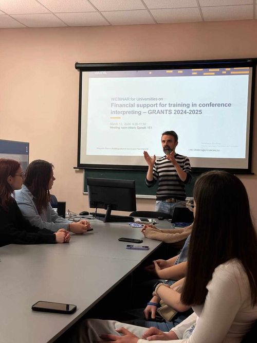 Україна ще тільки кандидат на членство в Європейському Союзі, а кафедра перекладу, прикладної та загальної лінгвістики вже робить вклад у розширення можливостей своїх нинішніх студентів і потенційних абітурієнтів та пропонує їм замислитися над кар’єрою усного перекладача для інституцій ЄС та й у Європейському Союзі в цілому.