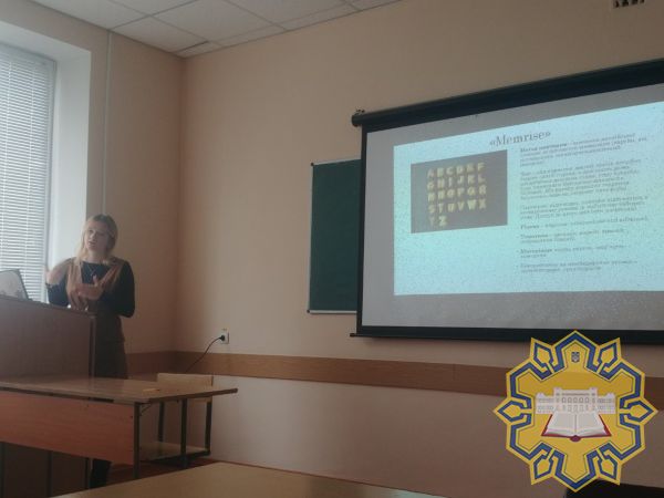 Як переконалася Процюк Аліна на власному досвіді, Інтернет створює унікальні можливості для вивчення і навчання англійської мови завдяки створенню природного мовного середовища. Студентка розповила про те, як можна пов’язати сучасні технології з вивченням іноземної мови. Зокрема практикантка ознайомила присутніх з варіантами використання таких інтернет платформ як “Memrise”, “FluentU”, “British Coucil”.