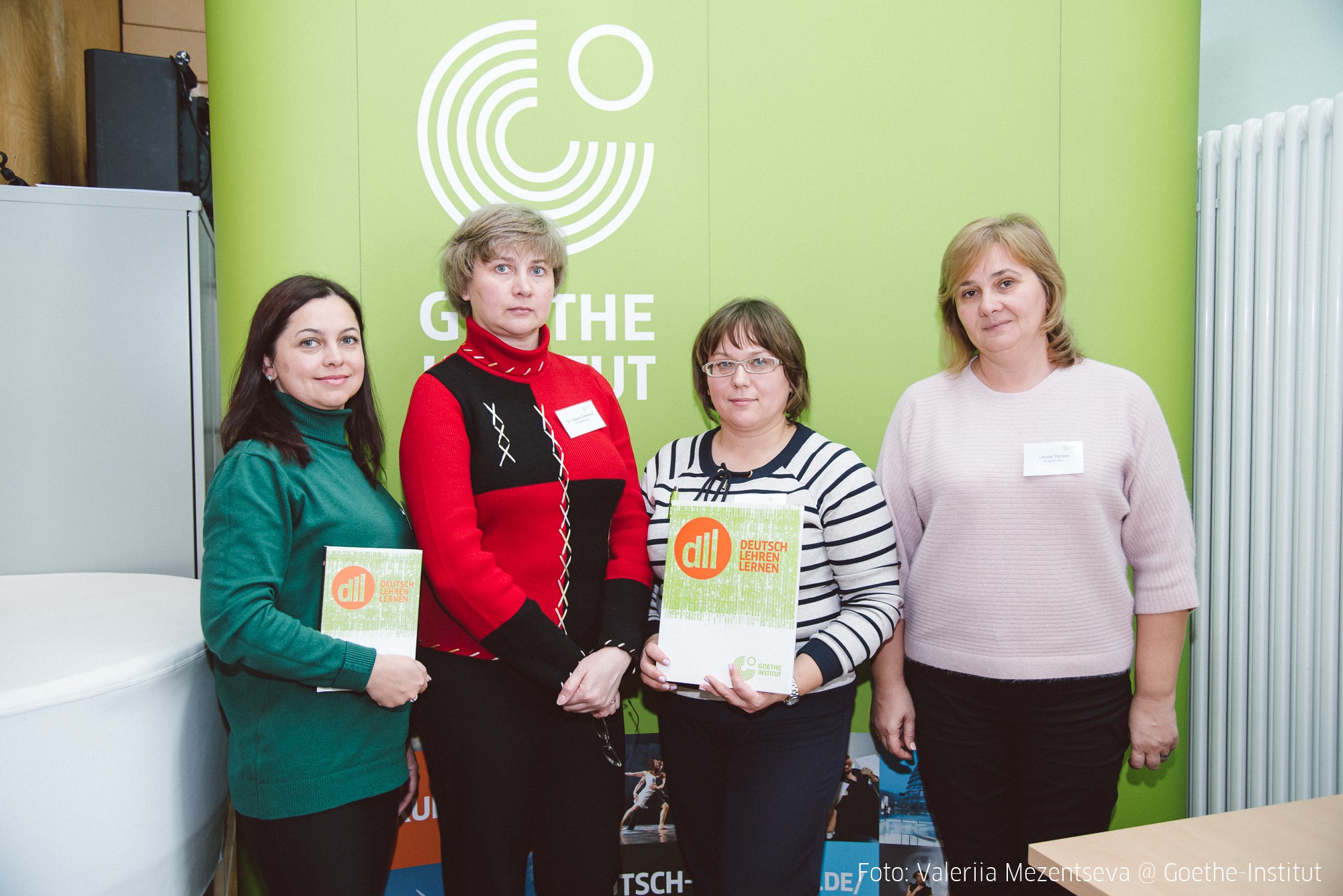 Представники факультету іноземних мов І.В. Пянковська, Т.С. Токарєва, Л.О. Ярова, Л.М. Кіт відвідали презентацію програми підготовки майбутніх вчителів німецької мови «Deutsch lehren lernen» (DLL), організовану Goethe-Institut у Києві. Викладачі мали можливість детально познайомитися з програмою DLL, поспілкуватися з колегами з інших ЗВО, які вже долучились до програмної мережі, отримати відповіді на актуальні питання та обговорити можливості співпраці з Goethe-Institut. У найближчому майбутньому планується підвищення кваліфікації викладачів нашого факультету за програмою DLL та впровадження навчальних курсів DLL у програму підготовки бакалаврів та магістрів спеціальності «Мова і література (німецька)».