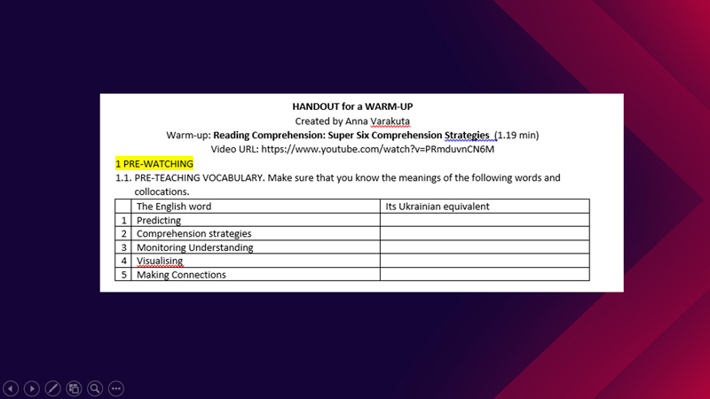 Магістрантка Анна Варакута поділилася техніками успішного проведення початку уроку англійської мови в старших класах.