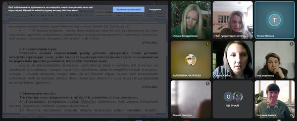Під час зустрічі було обговорено низку актуальних питань, присвячених науково-методичній підготовці вчителів-філологів, особливостям праці в складний воєнний час, важливості поєднання навчального процесу з патріотичним вихованням школярів. Професор С.Л.Ковтюх розповіла про особливості олімпіадного руху, познайомила із завданнями, які виконували цьогоріч учасники IV етапу Всеукраїнської учнівської олімпіади з української мови та літератури, відповіла на запитання. Частину часу присвятили складним випадкам синтаксичного аналізу речень.
