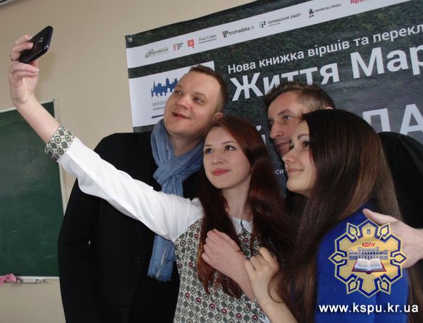 На завершення, дві студентки факультету філології та журналістики, вирішили не ставити Сергію запитань, а присвятили йому авторський вірш. Поет розчулився і визнав, що у нас дійсно найкращий філологічний факультет. Презентацію книги Сергій Жадан продовжив увечері у театрі ім. М. Кропивницького.