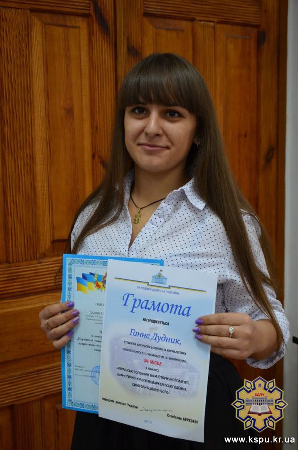 ДУДНИК ГАННА АНАТОЛІЇВНА, студентка VІ курсу факультету філології та журналістики, – І місце;