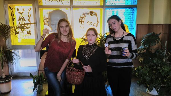 31 жовтня студрада факультет філології та журналістики порадувала своїх студентів низкою заходів присвячених таємничому святу Хелоуін. З самого ранку настрій піднімала Аліна Анохіна, студентка 32-ї групи, у ролі вишуканого вампіра, який пропонував усім охочим підняти собі настрій солодощами з цікавими передбаченнями. Другий етап святкування продовжився о 18.00 цікавим квестом по таємних закутках 5-поверхового корпусу. Локації квесту були заховані в найнесподіваніших місцях: буфет, підвал, пам’ятник Т.Шевченку на другому поверсі і навіть у нашого вірного та відважного охоронника.