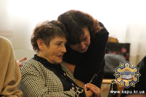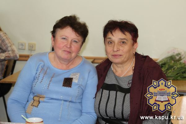 Доповідь «Homo sum, humani nihil a me alienum puto» прозвучала з уст завідувача кафедри української мови, професора, кандидата філологічних наук С. Л. Ковтюх, у якій висвітлено основні факти біографії, наукової та навчально-методичної діяльності шанованих ювілярів – старшого викладача кафедри української мови С. П. Пономаренко та кандидата філологічних наук, доцента Т. І. Поляруш. Початок щирих, теплих слів нинішнього завідувача кафедри присутні слухали на фоні прекрасного виконання пісні «Осіннє золото», яка є неофіційним гімном кафедри української мови. Вітальні адреси ветеранам від імені членів кафедри української мови зачитали доценти Т. В. Ліштаба та І. М. Демешко. Декан факультету філології та журналістики, доцент, кандидат філологічних наук Л. П. Кричун у короткій здравиці назвала високоповажаних іменинниць двома своїми мамами, оскільки С. П. Пономаренко – у студентські роки була куратором групи, у якій навчалася Людмила Петрівна, а Т. І. Поляруш, крім того, що була викладачем, виконувала обов’язки наукового керівника кандидатської дисертації.