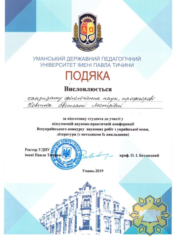 3–4 квітня 2019 року в Уманському державному педагогічному університеті імені Павла Тичини відбувся ІІ тур Всеукраїнського конкурсу студентських наукових робіт з української мови, літератури (з методикою їх викладання).