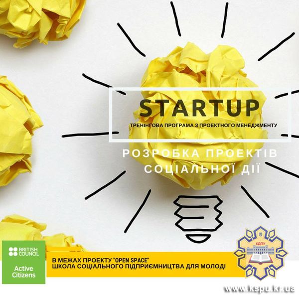 Тематика – видавничі проекти соціальної дії. Серія тренінгів з проектного менеджменту "Startup" (розробка проектів соціальної дії) є одним із етапів проекту "Openspace", який відбувається за підтримки Британської ради в Україні в межах програми "Activecitizens".