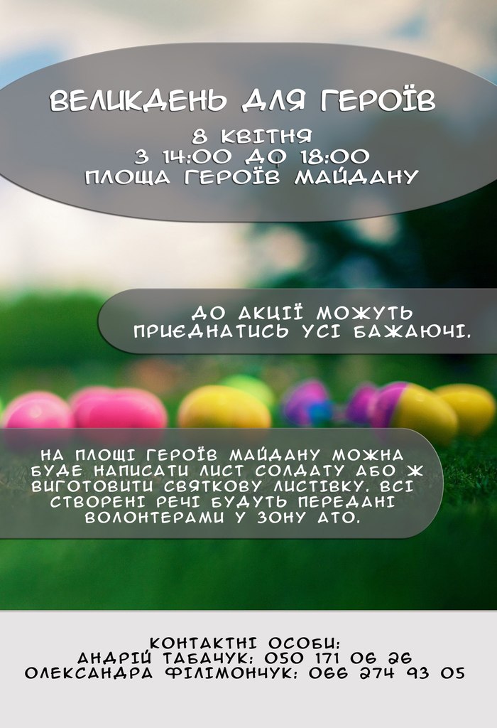 8 квітня з 14:00 до 18:00 на площі Героїв Майдану відбудеться акція «Великдень для героїв».