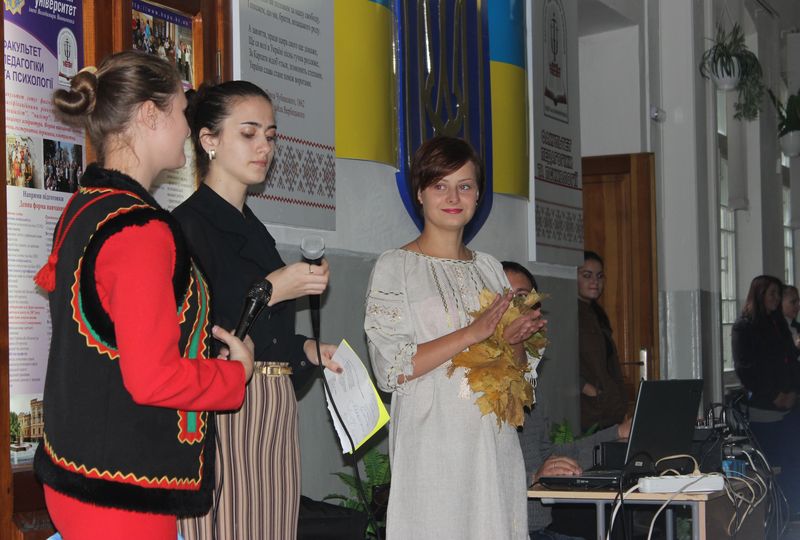 Так і на факультеті педагогіки та психології вже стало доброю традицією проводити День осені. Традиція одна, а ідеї у наших студентів кожного разу інші – ще оригінальніші та яскравіші. На цьому заході першокурсники можуть показати себе у всій красі. Приємними сюрпризами здивували вони і цього року. Тут можна було побачити незвичні вироби з природного матеріалу і оригінальне їх поєднання в композиціях. Кожна група повинна була захистити своє творіння. Тут студенти увімкнули політ фантазії на повну. Глядачі с захопленням слухали чудові вірші та пісні, не обійшлося й без танців та міні-вистав. Як не крути, а першокурсники у нас різносторонньо талановиті.