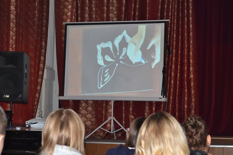 Незвичайним для факультету був номер Ольги Клименко: відеоряд, у якому глядачі ознайомилися з технікою малювання піском.