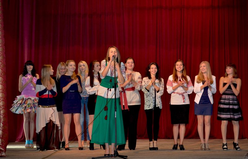 Відкрила програму Олександра Мішкевич українською народною піснею «Ой, верше мій, верше». Східний танець Яни Заруляк привернув увагу всіх глядачів в залі, особливо хлопців, яких, на жаль, не так багато на факультеті.
