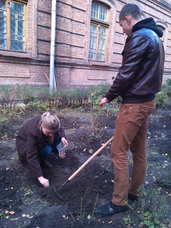 Першокурсники Веремієнко Микола, Горбунов Богдан, Іванов Микола, Кабаєва Анастасія, Перепічай Владислав та студентка 3 курсу Палій Юлія 30 вересня взяли активну участь у збагаченні університетської клумби. Маємо надію, що ця традиція буде продовжуватися ще багато років, радуючи око не лише студентів та викладачів університету, а й жителів міста Кіровограда.