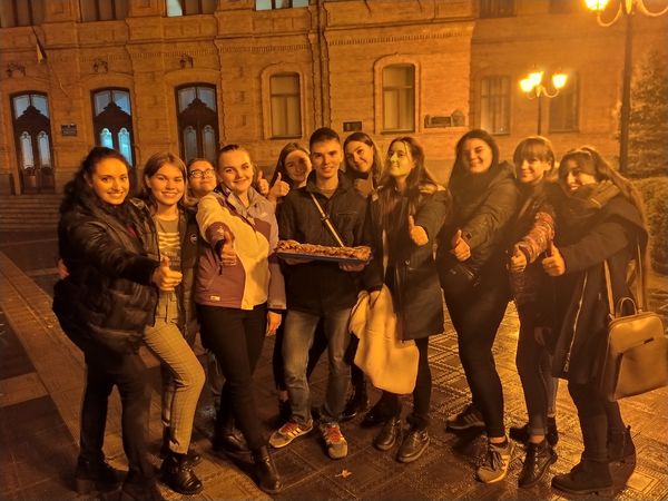 Кожна команда отримала смачний пиріг та грамоту від студпрофкому. А завершилось дійство загальним флешмобом та піснею, яку учасники розучували на локації мистецького факультету. Нехай ця перша подорож університетом створить гарну традицію до проведення таких квестів кожного року!