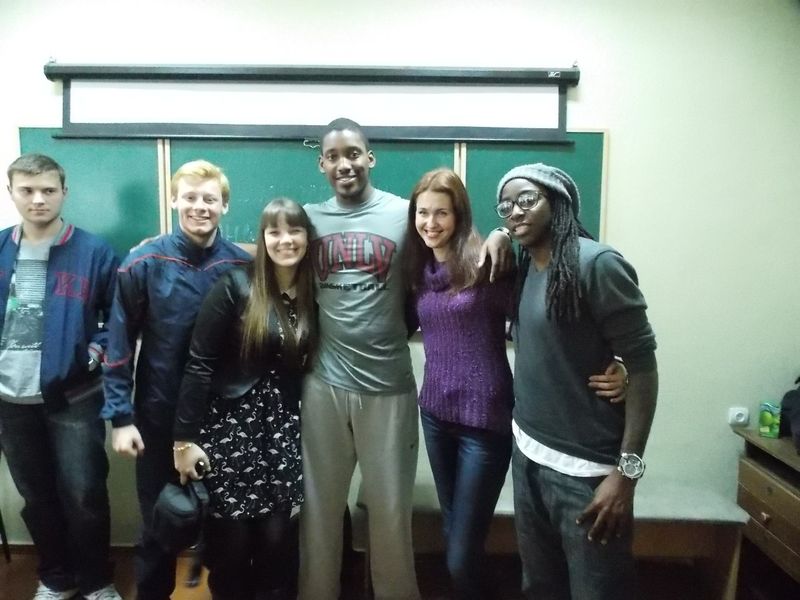 Керрі Гардін – сором’язлива дівчина з добрим серцем. Тані Робінсон – відкрита та рішуча, весела та дружелюбна. Тані розповіла всю історію свого життя і плани на майбутнє, також знайшла друзів серед учнів факультету іноземних мов. Дівчина почала грати в баскетбол із 15 років, а зараз навіть не уявляє життя без гри. ДеАндре Мейс – хлопець, який брав найактивнішу роль у розмові зі студентами. Багато запитань стосувалися нашого міста, людей і країни в цілому. Куінтрелл Томас – кремезний хлопець з Нью-Йорка, полюбляє подорожувати. Декілька років жив у Лас Вегасі. Як зізналися спортсмени, вони сумують за родичами та за домівками, але їм подобається і наша країна як місце для відпочинку. Зі слів Тані, саме в Україні вона нарешті виспалася, чого їй не вистачало у студентському житті в Америці. Гості залишатимуться в нашому місті до квітня наступного року. Вони виявили зацікавленість у проведенні Нового Року саме в Кіровограді, аби дізнатися більше, а, можливо, навіть перейняти українські новорічні традиції.