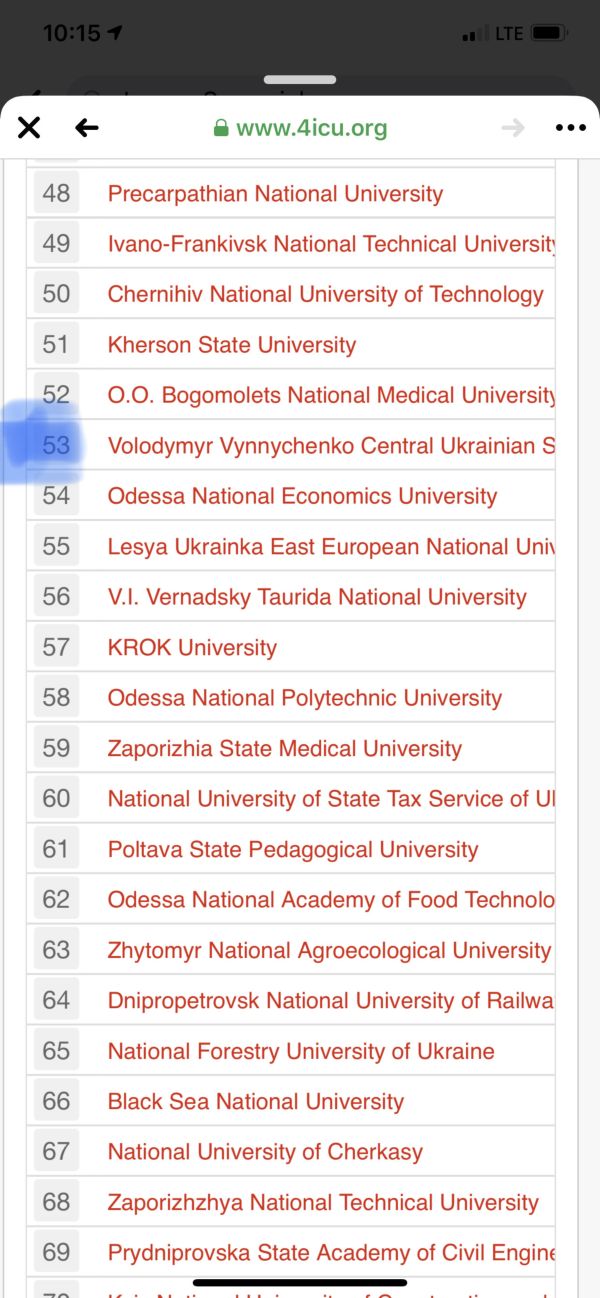 Провідний міжнародний каталог вищої освіти "UniRank", пошукова система, яка містить огляди та рейтинги понад 13 600 офіційно визнаних університетів та коледжів у 200 країнах світу, оприлюднив перелік найпопулярніших ЗВО України. Приємно, що Центральноукраїнський державний педагогічний університет імені Володимира Винниченка потрапив до ТОП-100 міжнародного каталогу вищої освіти України, де серед 171 університетів посідає 53 місце.