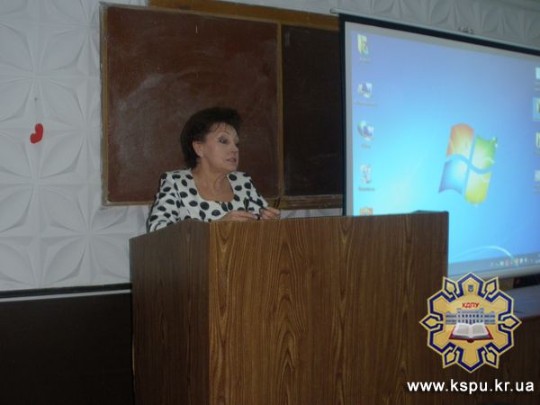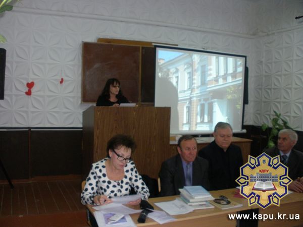 Старший викладач кафедри хореографічних дисциплін, образотворчого мистецтва та дизайну Л. О. Кулініч підготувала презентацію на тему “Формування пізнавального інтересу майбутніх художників-педагогів на прикладі гончарства” та познайомила присутніх з витворами гончарного мистецтва майстрів Кіровоградщини.