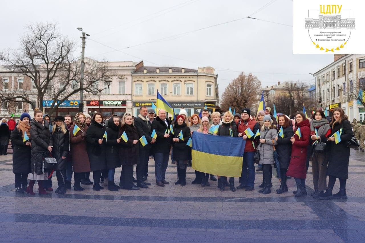 З нагоди свята відбувся Марш Єдності, до якого долучилися і викладачі та студенти ЦДПУ ім. В. Винниченка. Представники ректорату, адміністративних служб, деканатів та кафедр університету пройшли колоною від площі Героїв Майдану до Ковалівського парку, де відбулося вшанування пам'яті загиблих воїнів-кіборгів, урочисте підняття державного прапора та привітання з визначною подією від очільників міста і області.
