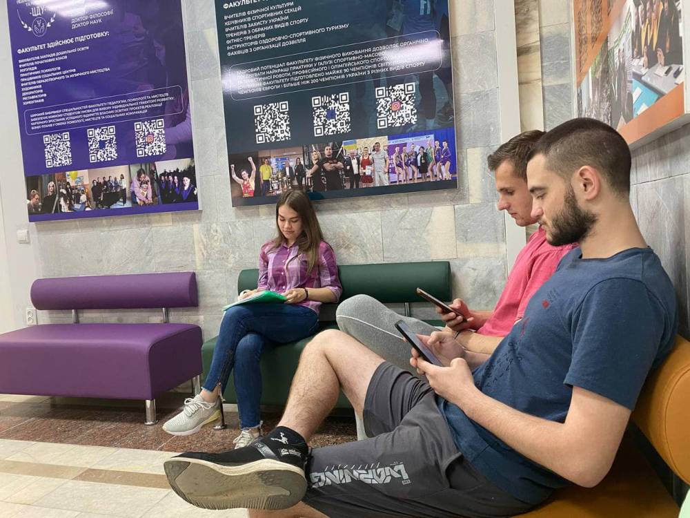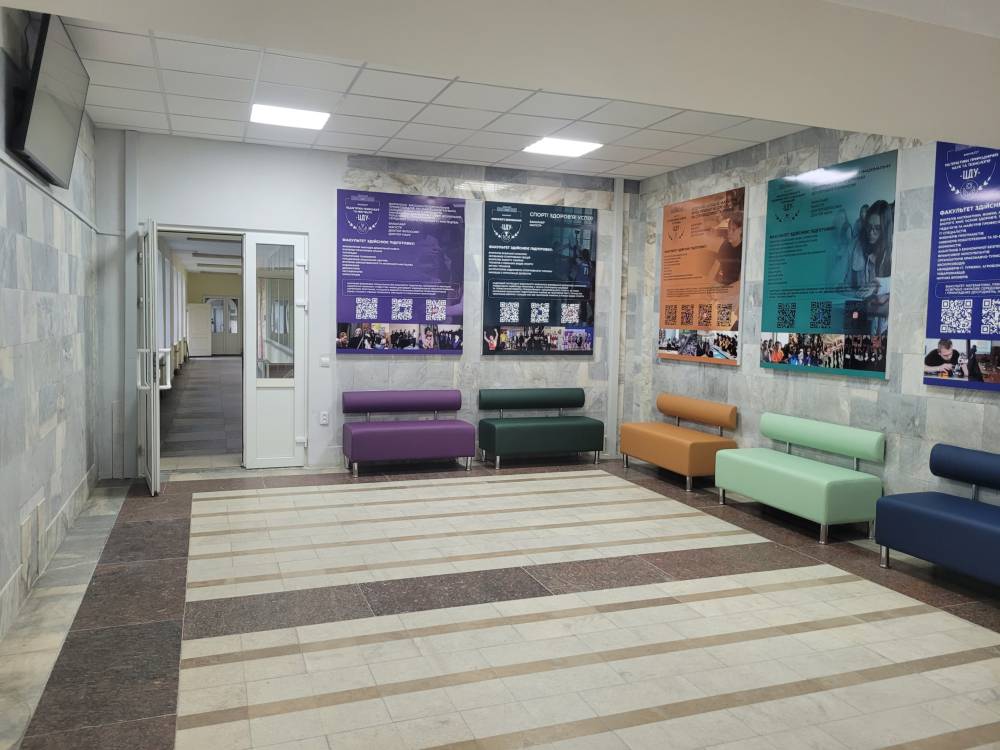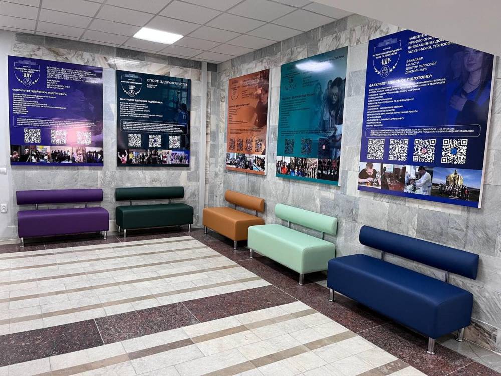 Крім того, нещодавно проведені ремонтні роботи у фойє навчального корпусу №5, неподалік приймальної комісії, встановлені зручні лавки для сидіння, інформаційні панелі та рекламні банери.