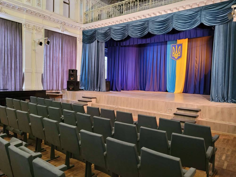 проведені ремонтні роботи в актовій залі (замінені оббивка сидінь, завіси, покриття сцени, оновлено технічне обладнання, освітлення сцени);