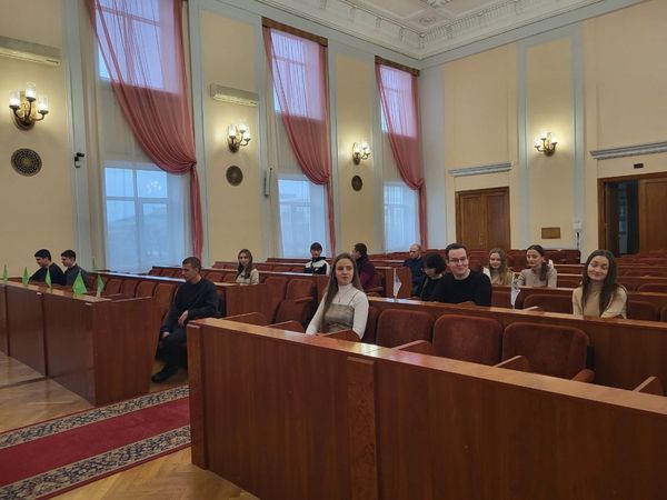 Цікавою була екскурсія до сесійної зали, де відбулося імітаційне засідання сесії ради, а студенти спробували себе в ролях голови та депутатів.