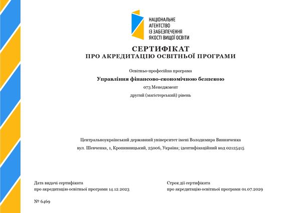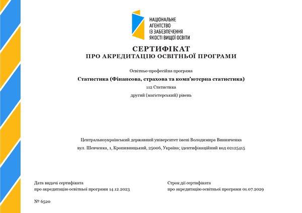 Ця акредитація охоплює широкий спектр напрямів, включно з менеджментом, професійною освітою (цифрові технології), статистикою, і є результатом спільних зусиль викладацького складу, студентів та адміністративного персоналу. Центральноукраїнський державний університет імені Володимира Винниченка пишається можливістю надавати студентам магістратури найвищий ступінь освіти, що відповідає сучасним вимогам ринку праці.