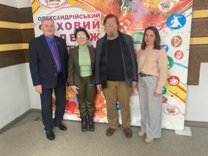 Другий день березневих зустрічей з професором Осборном розпочався нашим візитом до Олександрійського фахового коледжу культури і мистецтв, організованого керівником відділу профорієнтації та доуніверситетської підготовки Кирилом Панченко, де нас гостинно зустріли студенти й керівництво коледжу на чолі з директором, заслуженим працівником культури України Іваном Барановим.