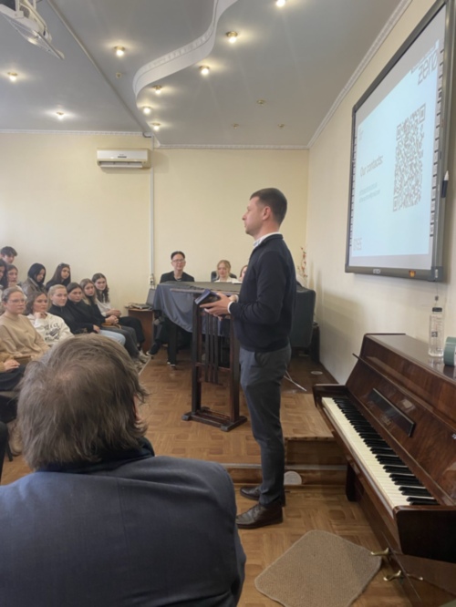 Зустріч пройшла у дружній обстановці. Розмова вигідно відрізнялася від загальноприйнятого формату профорієтаційних заходів легкістю, динамічністю, невимушеністю. Професор Алла Растригіна розповіла студентам про унікальність навчання в нашому університеті, де вперше в Україні з нового навчального року студенти навчатимуться за ОПП «Середня освіта (Мистецтво. Музичне мистецтво). Арт комунікації» та наголосила на розширенні меж майбутньої професійної діяльності здобувачів освіти. Співголова ГО «Арт Дот» Світлана Баженова розповіла про практичну арт-терапевтичну роботу у межах проєкту «Art Therapy Force», яка наразі стає все більш затребуваною в умовах війни. Кирило Панченко детально розповів про особливості цьогорічної вступної кампанії. Проте найбільше захоплення у студентів коледжу викликав виступ професора Найджела Осборна, який маючи багаторічний досвід, розповів слухачам про важливість травмоінформованої допомоги через мистецтво в подоланні посттравматичного . Професор миттєво залучив студентів до співтворчості. Ми висловлюємо щиру подяку директору, пану Івану та зав. директора пані Марії за теплий прийом і готовність до співпраці щодо вступу випускників коледжу до нашого університету.
