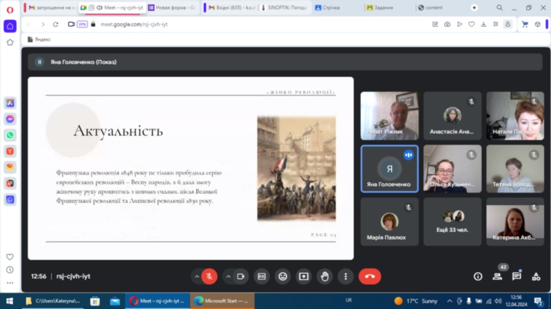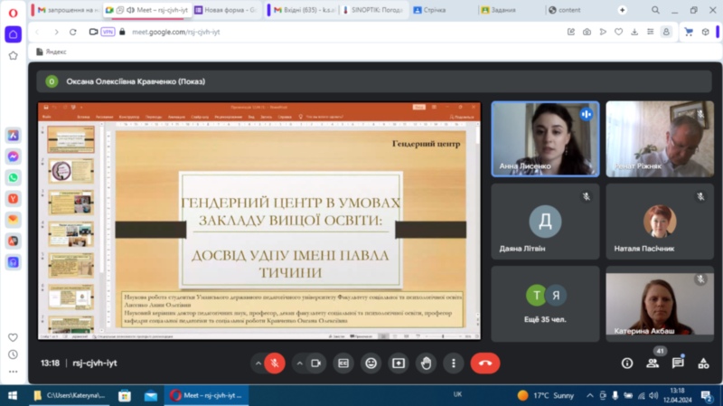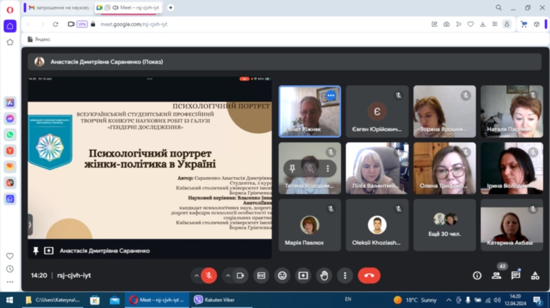 12 квітня 2024 року відбулася підсумкова науково-практична конференція Всеукраїнського студентського професійного творчого конкурсу наукових робіт із галузі «Гендерні дослідження».