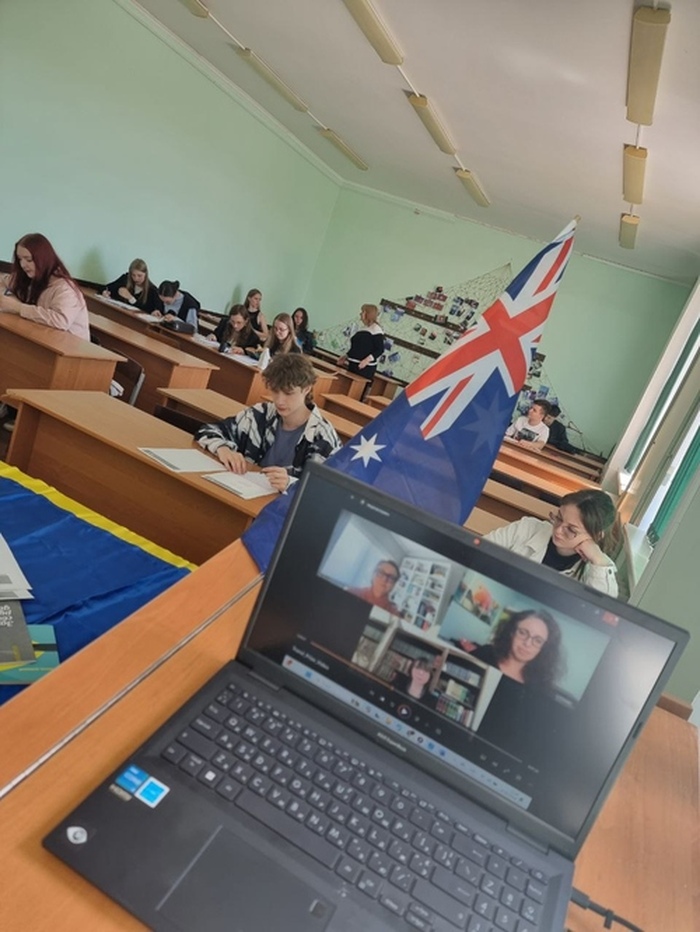 Відразу після початку конкурсу та привітання від наших австралійських партнерів Ольги Максвел (Університет Мельбурна), Марії Тумаркін (Університет Мельбурна) і Світлани Яковенко (книговидавництво «Sova Books») з Сіднею у Кропивницькому пролунав сигнал повітряної тривоги й конкурс було продовжено вже в бомбосховищі. Але нашим учасникам це не завадило продовжити працювати над обраним текстом для перекладу.