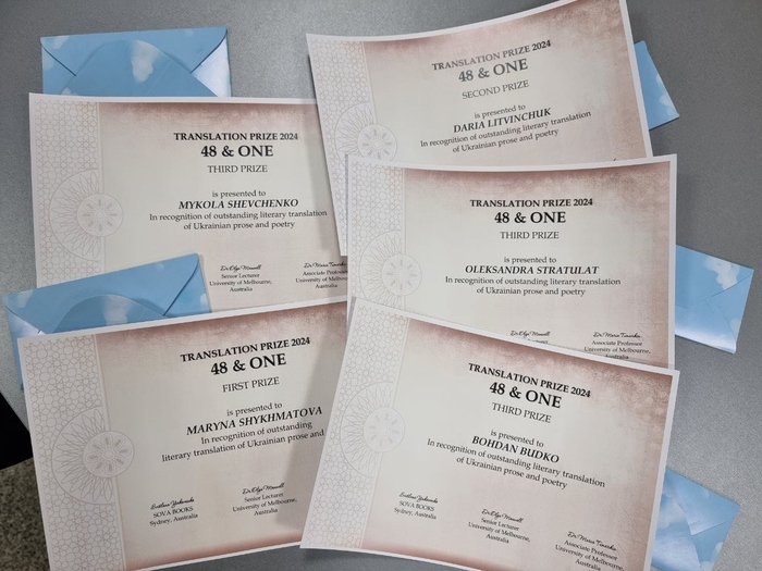 Усі учасники отримали дипломи та грошові призи, надані нашими австралійськими партнерами. Ми впевнені, що для наших студентів це лише перший крок на їхньому шляху до успішної кар’єри перекладача. Окрім того, переклади творів українських авторів англійською мовою допоможуть англомовному читачеві ближче познайомитись із сучасними літературними здобутками та сучасною українською культурою.