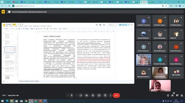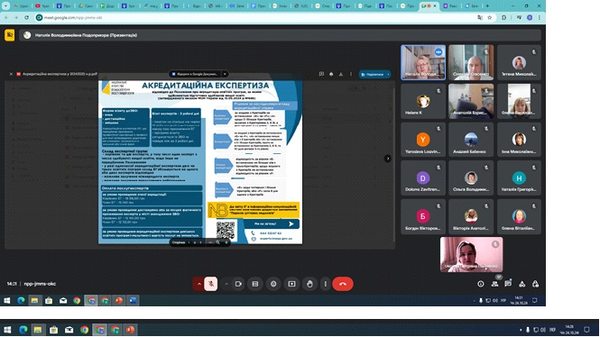 Спікери Наталія Подопригора, завідувачка відділу забезпечення якості та цифрового супроводу освіти, і Оксана Панченко, уповноважена з питань акредитації та ліцензування цього ж відділу ЦДУ ім. В. Винниченка, детально проаналізували підкритерії критерію 1 «Проектування та визначення цілей освітньої програми» звіту самоаналізу.