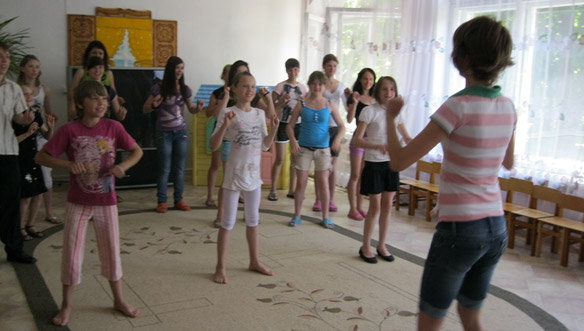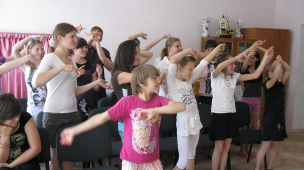 Розпитували Олю про все-все: і як танцюристи умудрялися складати такі складні фігури, і хто автор таких незвичайних ідей, і як складалися стосунки у колективі майдансерів і т.ін…Але справжній захват у дітей викликала пропозиція Олі зробити разом прямо у стінах дитбудинку невеличкий флешмоб. Визнаю, навіть мені було весело порухатися у веселій компанії, необтяженій віковими та зростовими вимогами, та ще й під егідою справжнісінької танцівниці MAЙDAN’Sу, що прославив наше невеличке місто на цілий величезний світ!