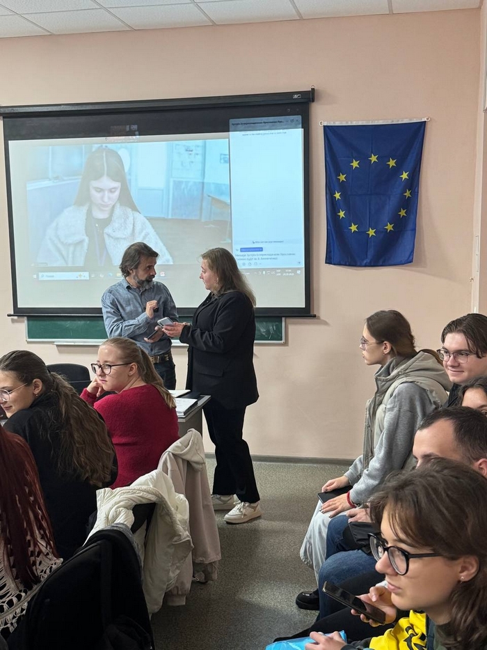 Ну, і по-третє, формат заходу був гібридним ще й тому, що в режимі онлайн до нього приєдналися старшокласники Мультипрофільного ліцею Олександрійської міської ради Кіровоградської області — наші майбутні абітурієнти та здобувачі освіти. В кількох словах ми коментували розповіді Ярослави для школярів, пояснюючи малознайому для них лексику або розказуючи про можливості лабораторії в дії.