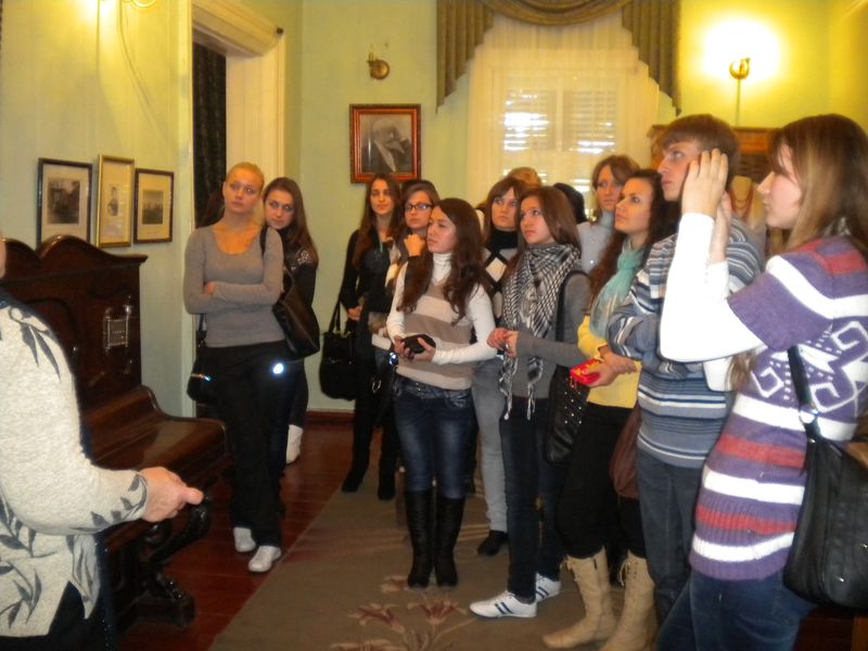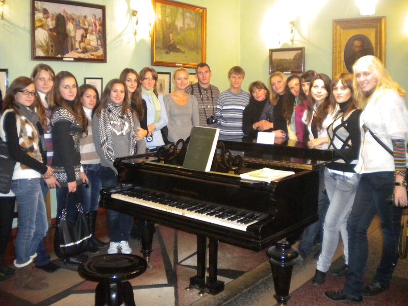 Екскурсія перетворилася на справжній художній діалог. Студенти насолоджувалися поетичними рядками Пушкіна, поринали у ліричні звуки незабутніх мелодій Чайковського. У виконанні Л. Гайдай прозвучали фрагменти з балетів «Лускунчик», «Лебедине озеро», п’єси з «Дитячого альбому» та камерно-вокальні твори у виконанні студентки 2 курсу Катерини Дем’яненко: «Осінь», «Мій садочок» П.Чайковського та українська народна пісня «Місяць на небі» в обробці Ф.Надененка.