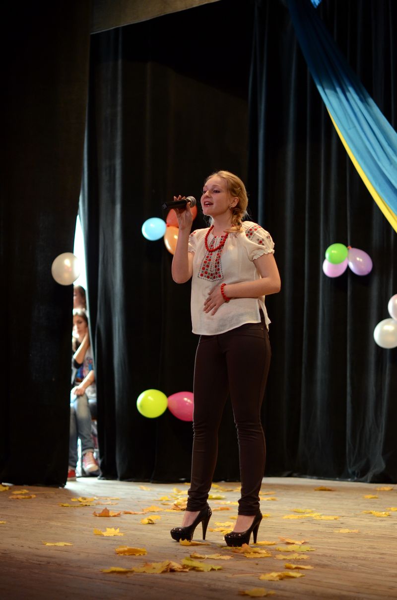 Початок, щоправда, був звичайний (на те він і початок): вручення грамот активістам факультету. Багато пісень (і як потім не говорити про співочу українську націю, коли дівчата і справді гарно співали?) серед яких були «Як у нас на Україні», «Мамина сорочка»,«Не в тому річ», була навіть пісня англійською мовою, але найбільше вразили публіку пісня, яку виконувала студентка 2-о курсу Мосежна Оля. Вона заспівала сучасну українську пісню «Не твоя вина». Дійсно, глибоко патріотична щира річ. Там є такі слова «Добре там, де нас нема. Ти сам собі країна – зроби порядок в своїй голові». Глядачі заслухались і замислились над цими простими, здавалося б, словами. У нас багато національних недовирішених питань і ми, як нове покоління, маємо намагатися щось змінити, а не просто співати про калину та читати про «бідний український народ». Але це сумна тема, тому поки що чіпати її не будемо. Говоримо про свято.