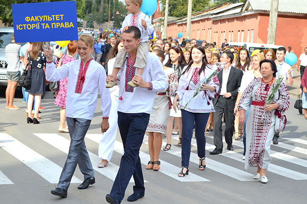Першокурсників та учнів педагогічного ліцею, які після урочистої ходи вишикувалися у стрункі шеренги, вітали ректор університету професор Олег Анатолійович Семенюк, заступник голови обласної державної адміністрації Віта Вікторівна Атаманчук та голова обласного комітету профспілки працівників освіти і науки Світлана Леонідівна Скалько.