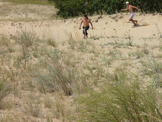Унікальність Олешшя пов’язана з величезним різноманіттям природних особливостей регіону, - наявністю задернованих і голих пісків, солончаків, саг, березових гаїв (колок) і унікальних фітоценозів, розмаїттям прісних і солоних озер, лиманів, заток, заповідних територій всесвітнього значення, штучно сформованих лісових масивів. Тобто територія цікава і у науковому плані їй приділялася значна увага науковців різних спеціальностей. Однак, це регіон, який ще зберігає свою таємничість щодо механізму формування піщаних арен (вони флювіального чи гляціального походження?), внутрішньоаренної ландшафтної структури, прояву взаємодії зональних й інтразональних факторів формування ландшафтів Олешківських пісків. Саме у зв’язку з цими ще нез’ясованими особливостями викладачами і студентами-магістрами природничо-географічного факультету в серпні було проведено експедицію в Херсонську область до Іванівської та Кінбурнської піщаних арен.