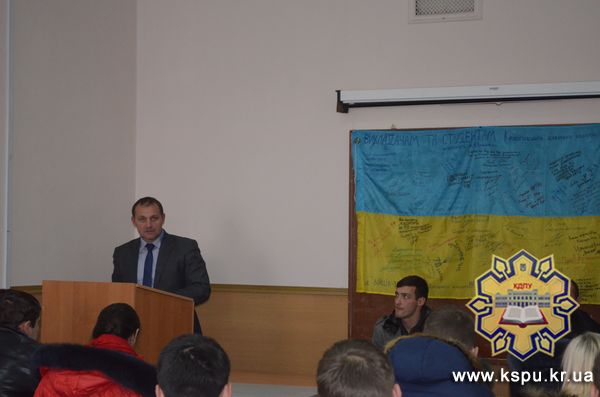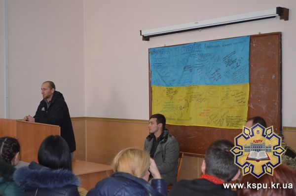 На факультеті історії та права КДПУ ім. В. Винниченка відбулася зустріч студентів і викладачів із випускниками факультету, військовослужбовцями третього Кіровоградського полку спецпризначення, воїнами АТО Ярославом Бирсою, Ярославом Сторчаком, Євгенієм Сушковим.