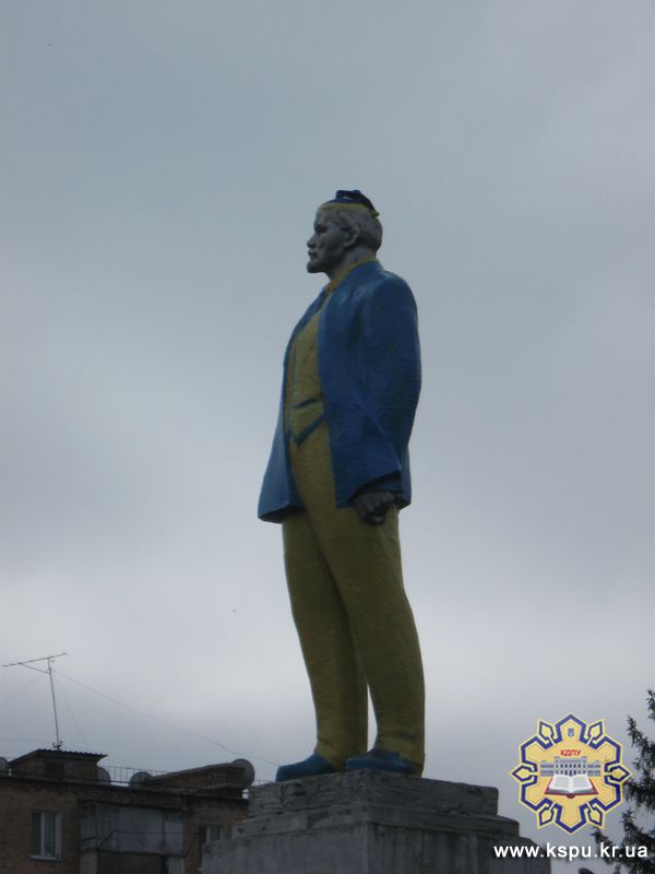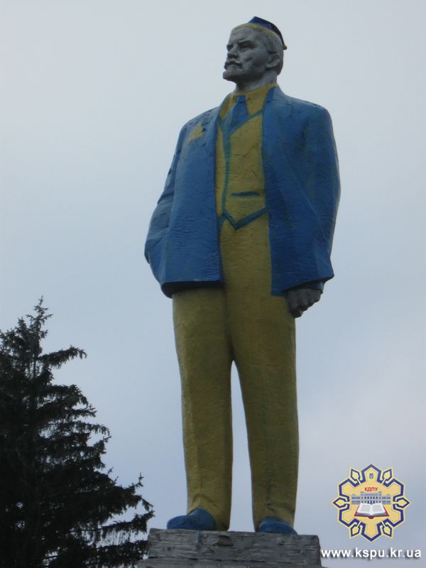 Ми пройшлися вулицями Побузького, люди шанобливо віталися, на головній площі пам’ятник Леніну, вифарбуваний у синьо-жовте, на голову колишньому вождю місцеві жартівники причепили ще й оселедець.