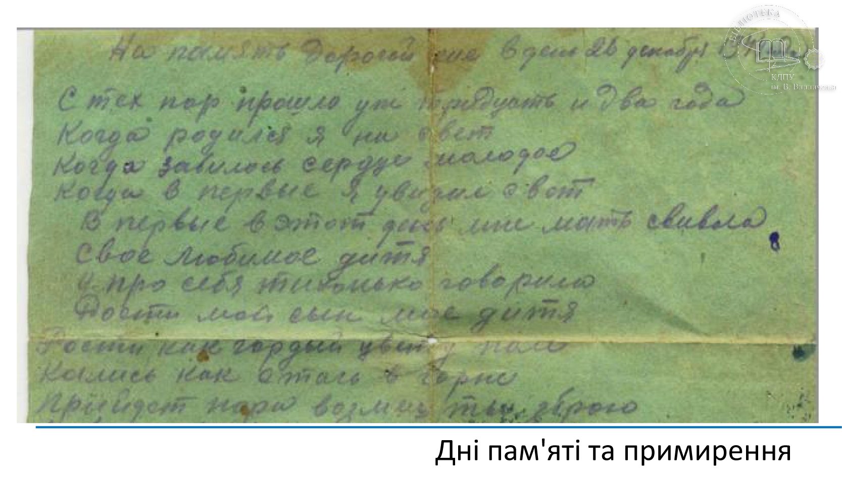 ДНІ ПАМ'ЯТІ ТА ПРИМИРЕННЯ