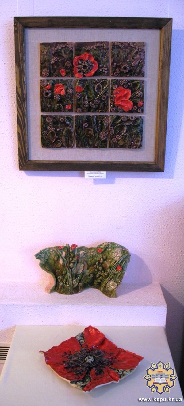 Опановували нелегке мистецтво кераміки Кравченко В.С. - серія декоративних свічників «Дерево життя», «Риба», «Лев» (глина, ліплення, глазурі) та Виштикайло А.В. - декоративна композиція «Маки» (кераміка, солі, оксиди, глазурі) завдяки Кулініч Л.О. - старшого викладача кафедри хореографічних дисциплін образотворчого мистецтва та дизайну.