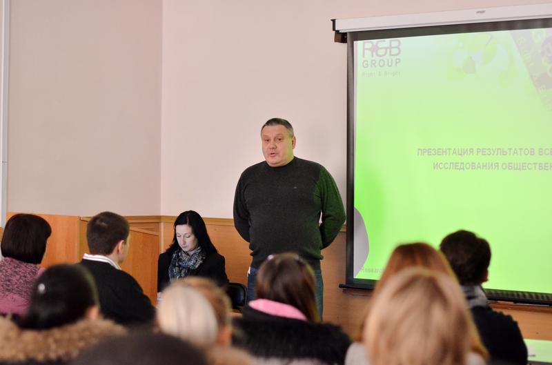 Студенти факультету історії та права зустрілися з відомим українським соціологом Євгеном Копатьком під час його перебування в Кіровограді у рамках презентації результатів дослідження: «Україна: Захід. Центр. Схід - єдність у різноманітті», яке відбулося 23 лютого.