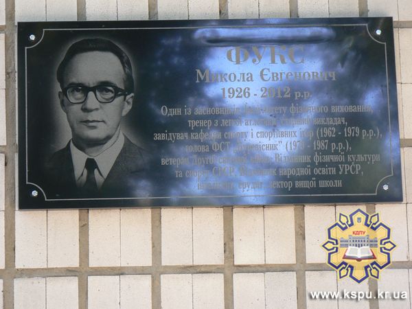 В присутності студентів факультету фізичного виховання і шановних гостей відбувся церемоніал відкриття пам’ятної дошки одному з засновників факультету фізичного виховання Фуксу Миколі Євгеновичу. Теплими словами згадували Миколу Євгеновича: голова ветеранів спорту Кіровоградщини Березан О. П., колеги, друзі, близькі та вихованці.