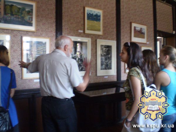 Зали Художньо-меморіального музею ім. О.О. Осмьоркіна, де проходила виставка відомого майстра, гостинно відкрили двері, й студентів зустріли провідний науковий співробітник музею, заслужений художник А.М. Надєждін та сам автор — господар виставки, член Національної спілки художників України, художник Ф.М. Полонський.
