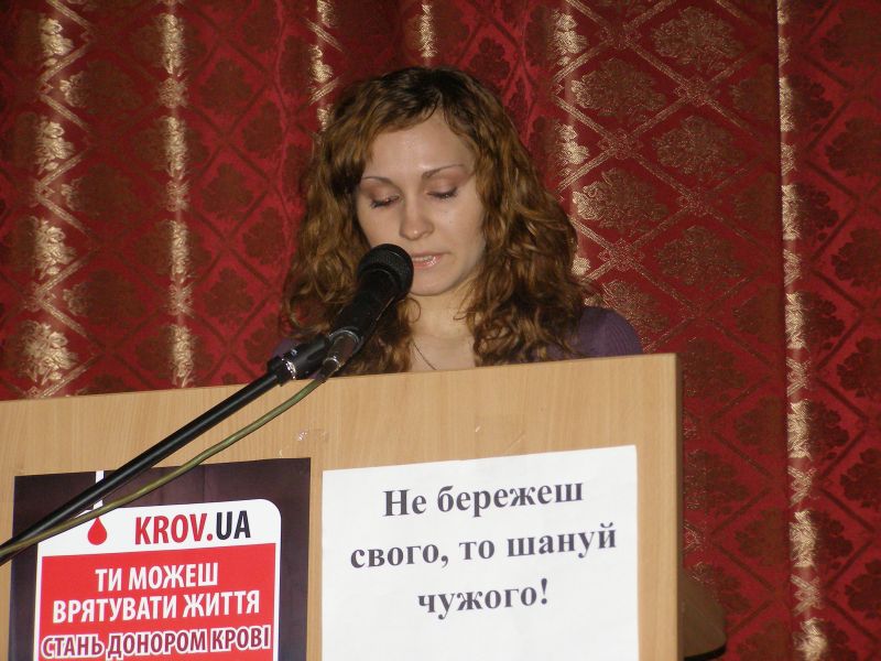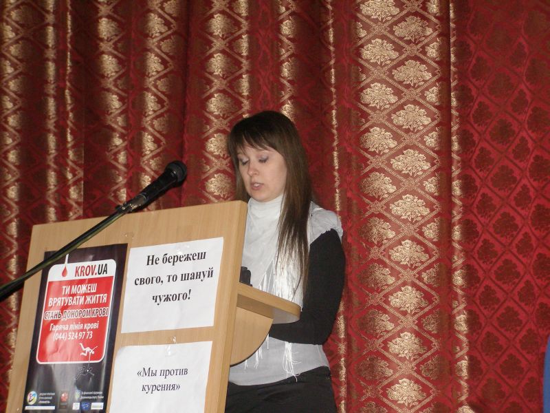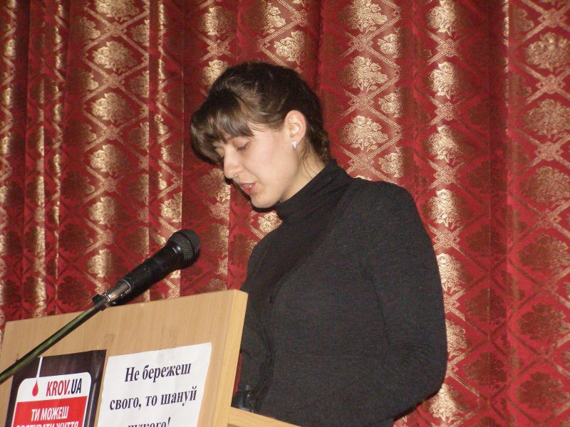 - Сігова А., голова студентської ради психолого-педагогічного факультету. Тема доповіді: «Здай кров – врятуй життя!».