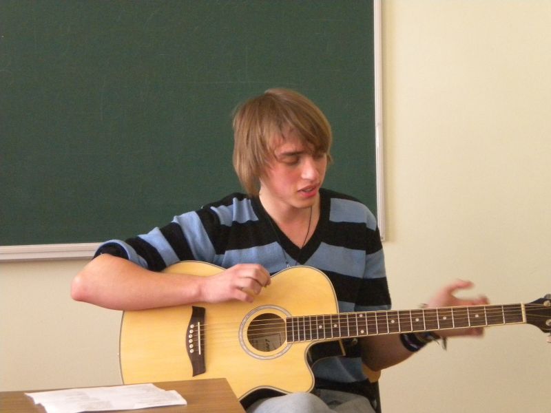 На факультеті філології та журналістики відбувся імпровізований концерт Кирила Поліщука, студента 4-го курсу. Він читав свої поезії, грав на гітарі, виконував власні та чужі пісні.