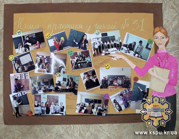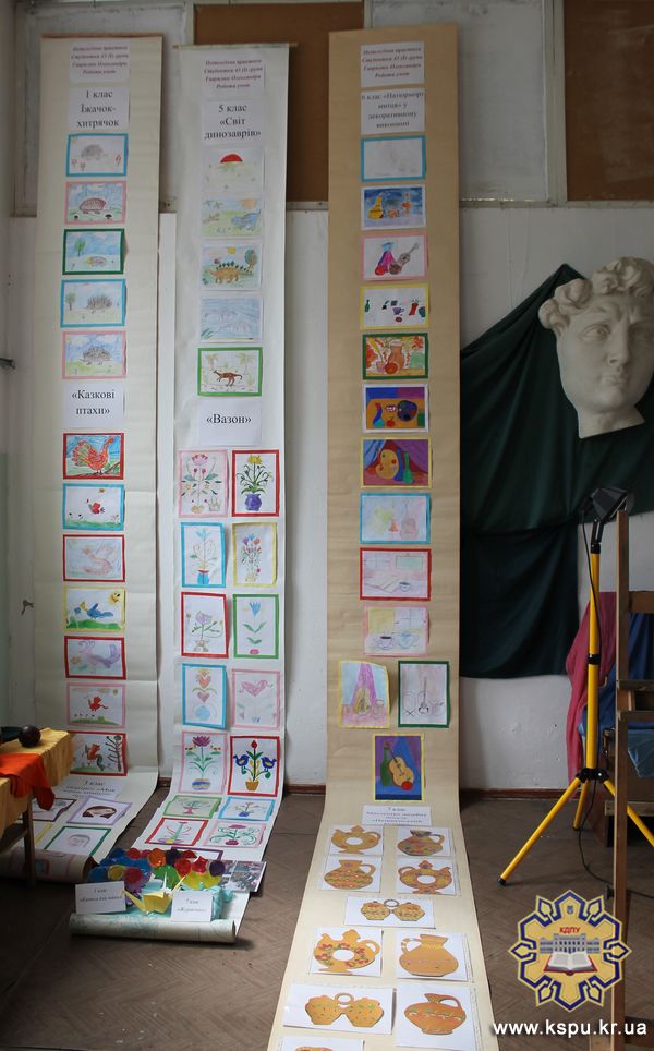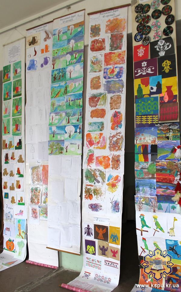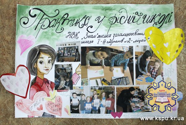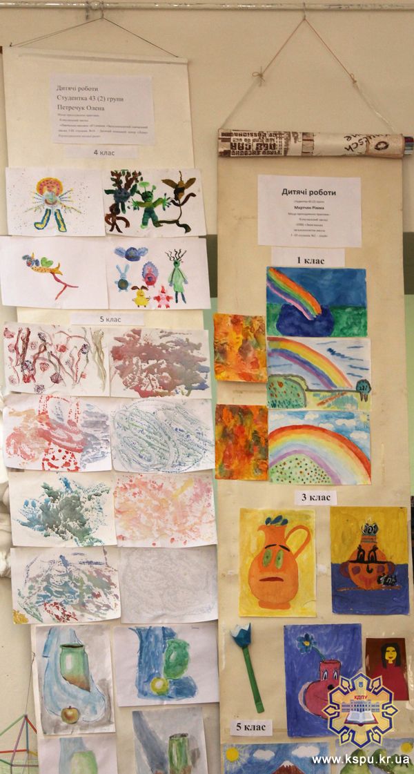 Також цікавими та креативними були презентації у вигляді виставки дитячих робіт. Влаштовано виставку стінгазет із фотографіями та враженнями про практику про кожний навчальний заклад, у якому проходили педагогічну практику студенти.
