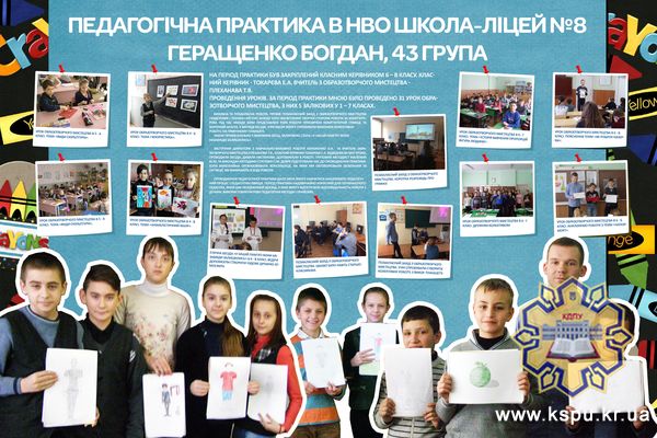 Цьогорічна педагогічна практика з образотворчого мистецтва в загальноосвітніх школах проходила з 1.02.16. по 12.03.2016 року в таких загальноосвітніх навчальних закладах м. Кіровограда та Кіровоградської області: