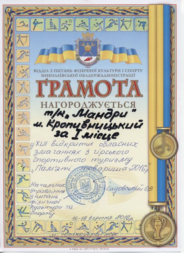 Три команди представляли туристичний клуб «Мандри» Кіровоградського державного педагогічного університету імені Володимира Винниченка та ще одну команду представляли випускники клубу. Після минулорічного другого місця першій команді КДПУ у рівній запеклій боротьбі вдалося вибороти І місце, випередивши господарів лише на один бал. Команда-переможець – це сплав досвіду і молодості: поруч з магістрантом, студентом 7-го курсу ПГФ Іваном Горецьким боролися В'ячеслав Скорохід з ІІ курсу ФФВ (капітан команди) та першокурсники-географи Максим Троцький та Вікторія Александрова. В інших командах виступали Ходаковська Ірина (ПГФ, 5-й курс), Німеровський Максим, Кондратенко Роман, Назаренко Данило, Пальчиков Віктор, Сопільняк Анатолій, Рощик Тетяна, Гончаренко Інна, Сухенко Олександра (всі ПГФ, 2-й курс). Команди до змагань готував тренер, доцент кафедри географії та геоекології, голова турклубу «Мандри» Колотуха О.В.