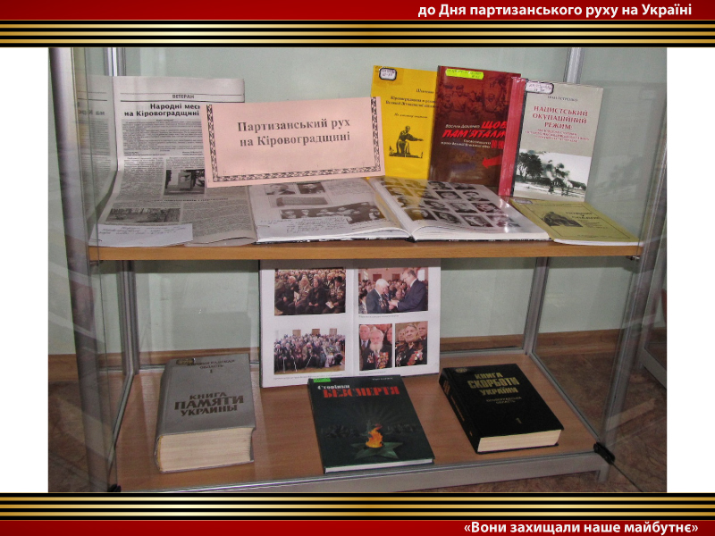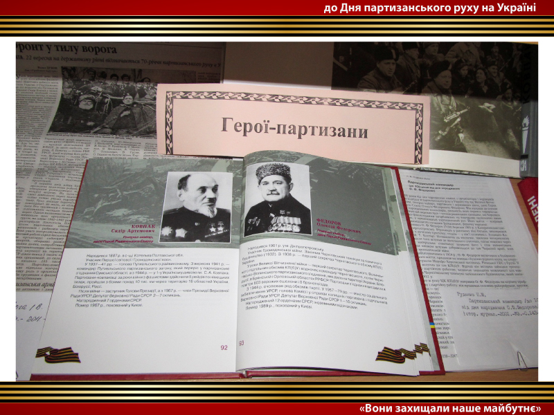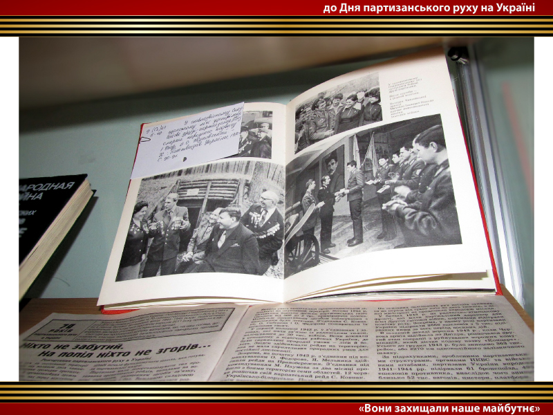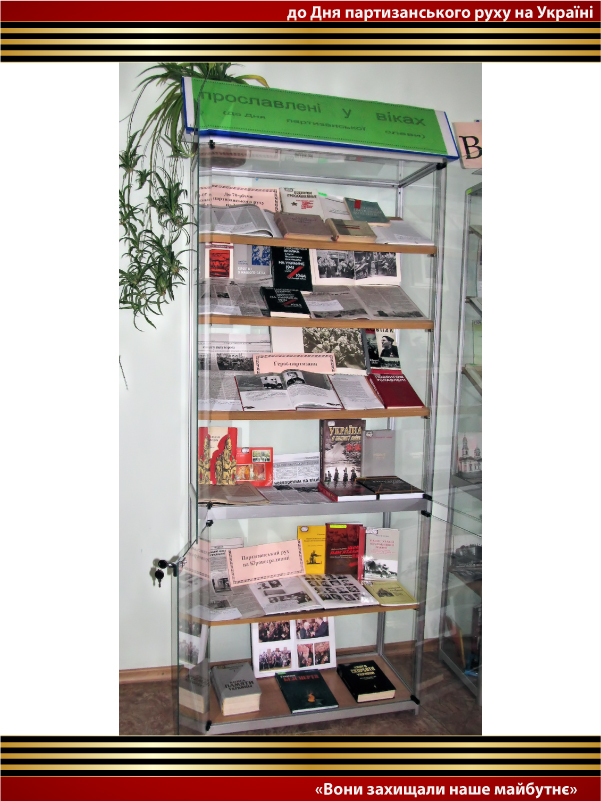 До Дня партизанського руху на Україні універсальний читальний зал представляє виставку «Вони захищали наше майбутнє» за такими рубриками:
